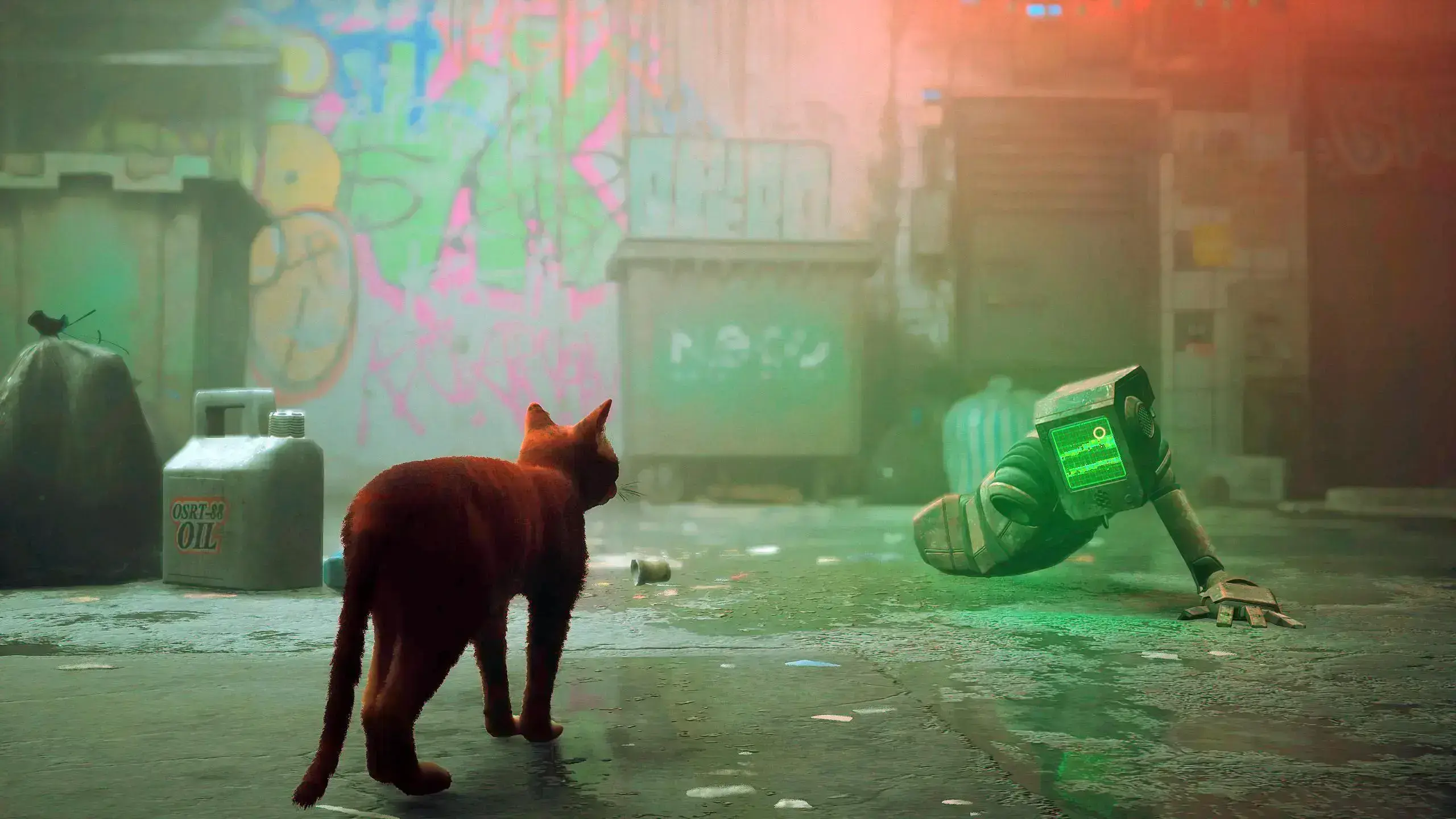 Stray is a third-person cat adventure game where you play as a stray cat navigating a decaying cyberpunk city and its underbelly. The cat, separated from its family, must solve an ancient mystery and escape with the help of a drone companion named B-12. The game emphasizes exploration, stealth, and interaction with the environment, including playful interactions with robots and dangerous creatures.