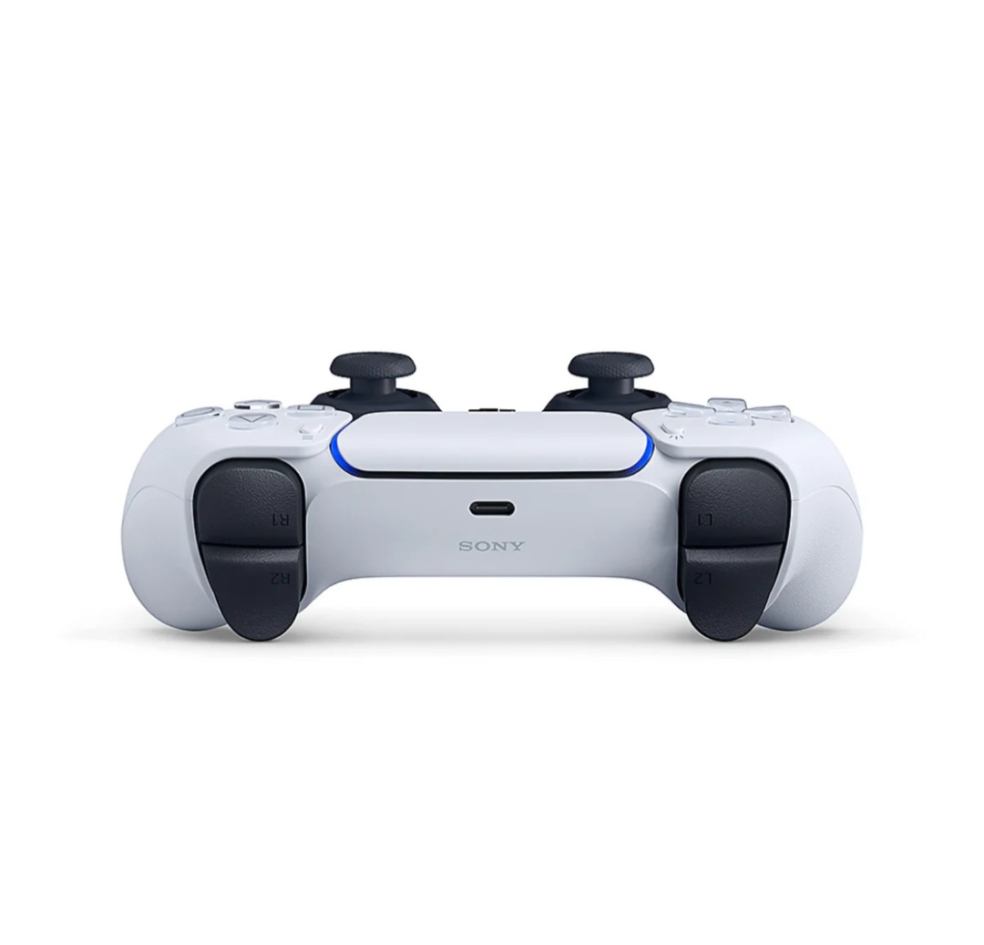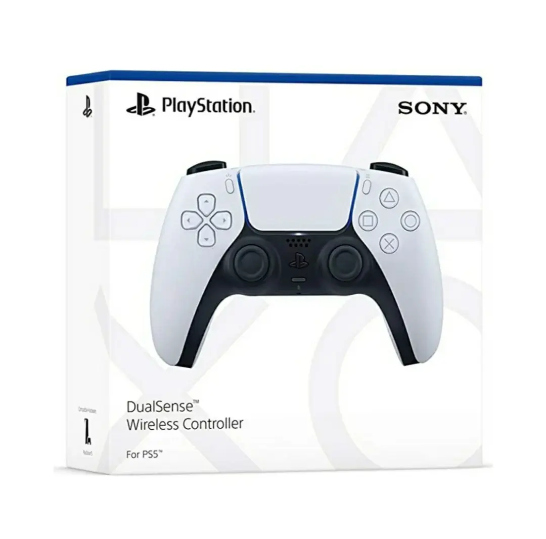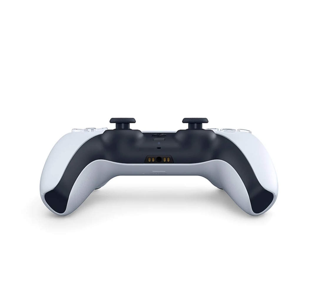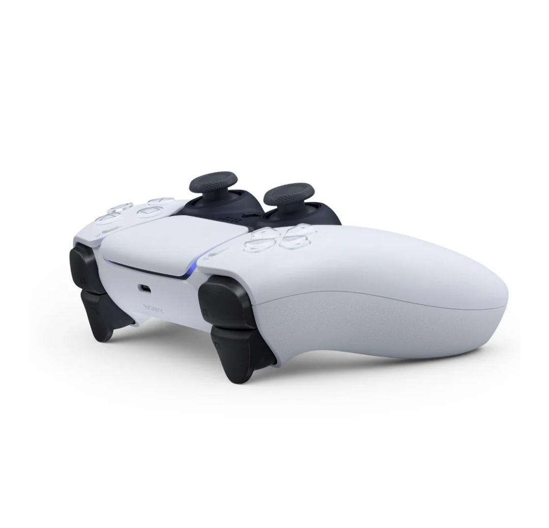 The PS5's DualSense wireless controller offers an immersive gaming experience through features like haptic feedback, adaptive triggers, and a built-in microphone, all integrated into a sleek, two-toned design. It also includes a "Create" button for sharing gameplay moments and a built-in speaker. <br />