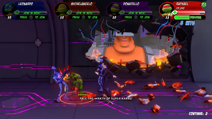Teenage Mutant Ninja Turtles: Wrath of the Mutants for PS5 is an enhanced version of the 2017 arcade game, featuring the visual style and characters from the 2012 Nickelodeon TV series. It's a side-scrolling beat 'em up where players control Leonardo, Michelangelo, Donatello, or Raphael, battling through stages and bosses to defeat Shredder. The game offers local co-op for up to four players and includes new levels and bosses not found in the original arcade version.