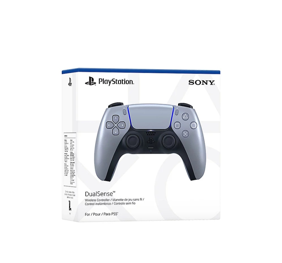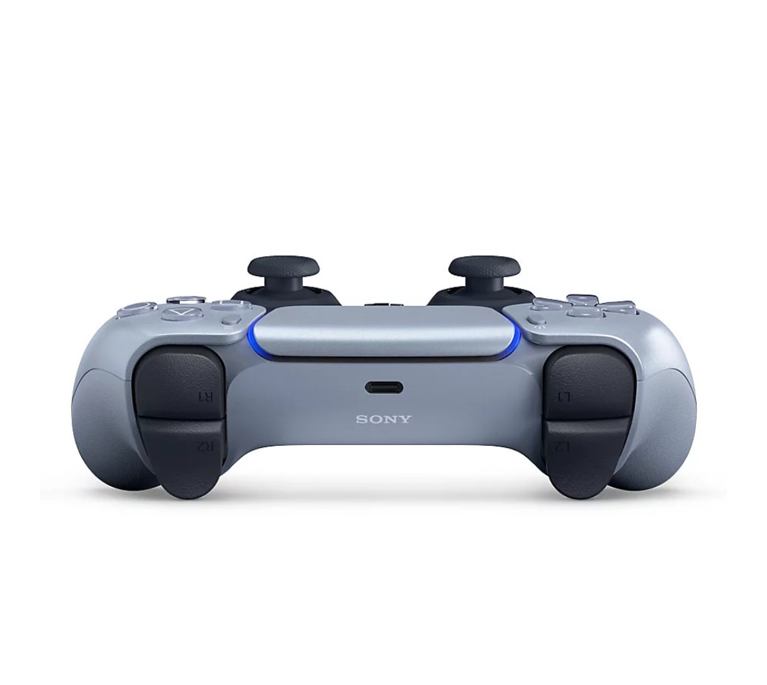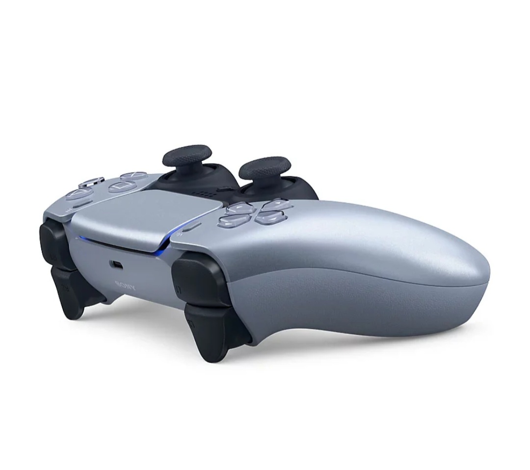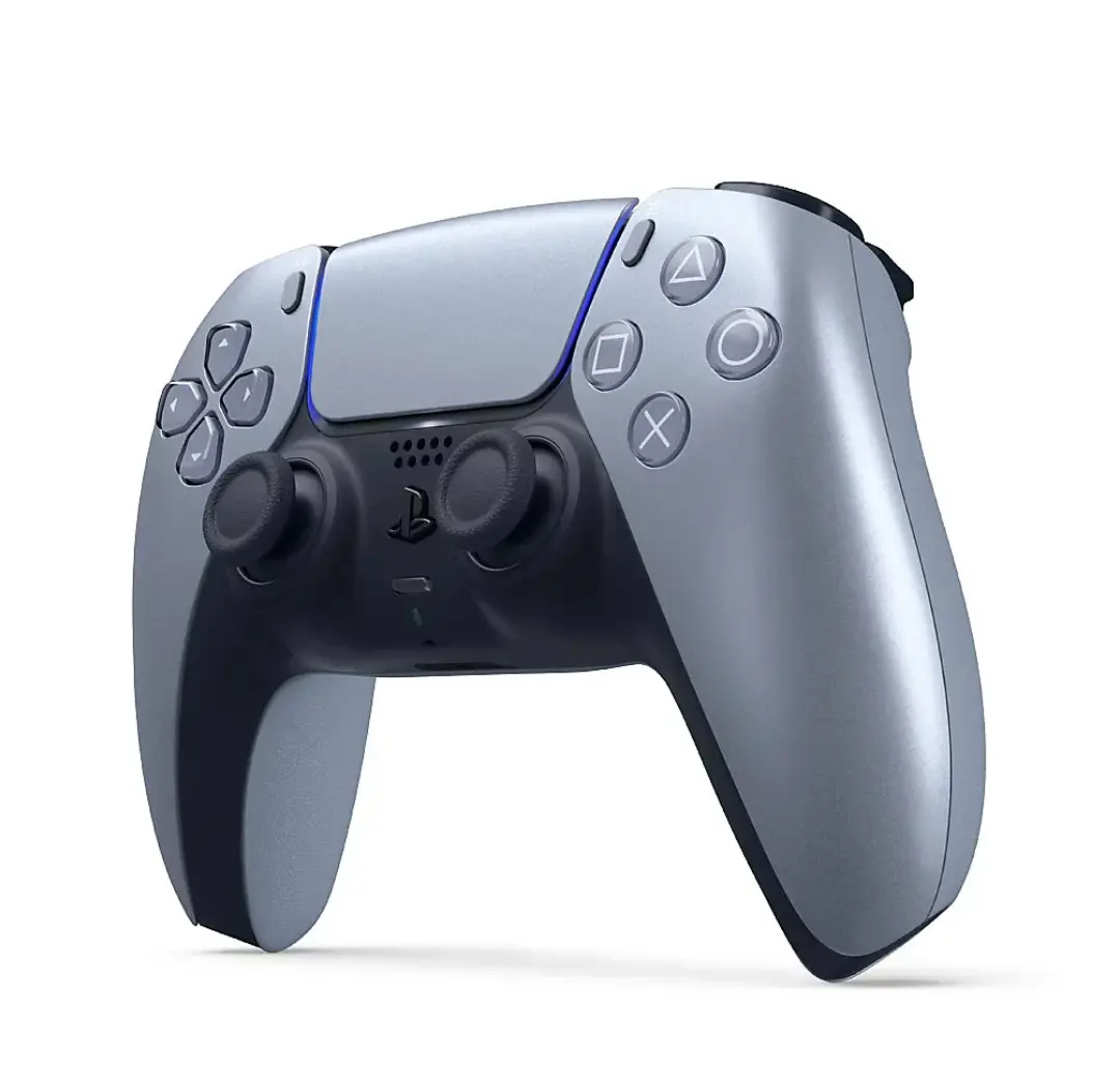 The DualSense wireless controller in Sterling Silver for the PlayStation 5 is a sleek, metallic-finished controller that offers a premium aesthetic and immersive gaming experience. It features haptic feedback, adaptive triggers, a built-in microphone, and a built-in speaker for enhanced in-game sensations and communication. The controller also includes a built-in battery, a USB Type-C port for charging, and a 3.5mm headset jack. <br />