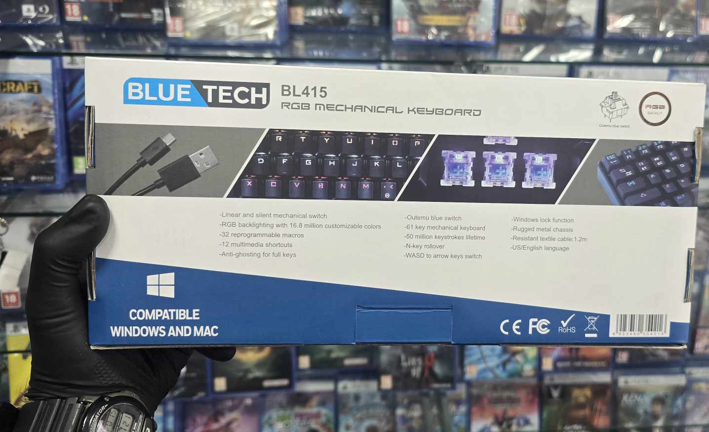 A blue switch 60% mechanical keyboard offers a compact, tenkeyless design (around 60% of a full-sized keyboard) with blue mechanical switches. These switches are known for their tactile feedback and audible "click" sound with each keystroke, making them popular for typists and gamers who enjoy the feedback. <br />