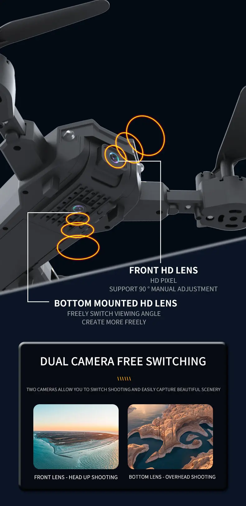 G3 PRO Pihot ~ Drone <br /> Large battery ! <br /> Fly time : 10min <br /> Fly range 100-Meters <br /> Dual camera front and bottom <br /> Carring case !