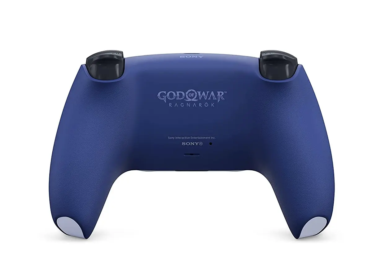 The back of the controller has the "God of War Ragnarök" title printed on it. <br />