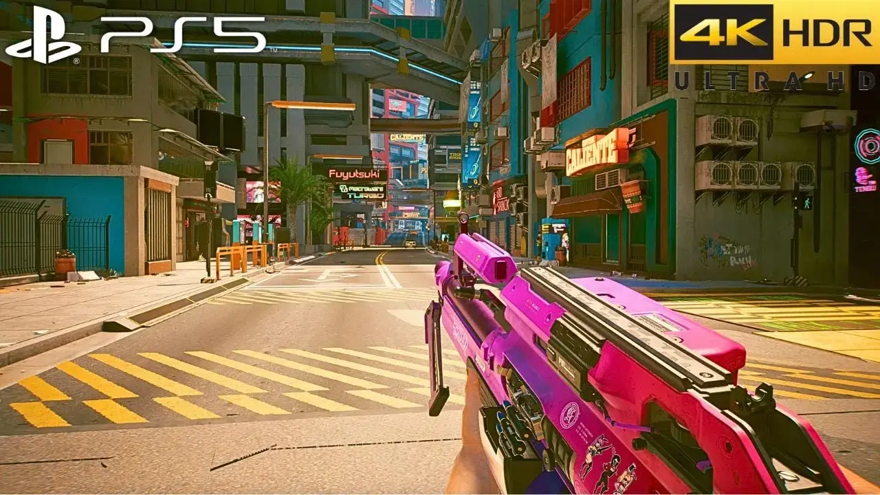 Cyberpunk 2077 on PlayStation 5 is an action-adventure RPG set in the neon-drenched, dystopian Night City. Players take on the role of V, a mercenary outlaw, navigating a world obsessed with power, glamour, and body modification. The game features a sprawling open world, deep character customization, and a branching narrative influenced by player choices. The PS5 version offers enhanced visuals, faster loading times, and improved gameplay features compared to the PS4 version. <br />