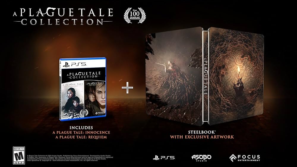 The A Plague Tale Collection for PS5 includes both A Plague Tale: Innocence and A Plague Tale: Requiem, offering a complete story experience for fans of the series. This collection also features a premium steelbook case with exclusive artwork, making it a great option for collectors. The games are enhanced for the PS5, with improved graphics, faster loading times, and richer audio.<br />