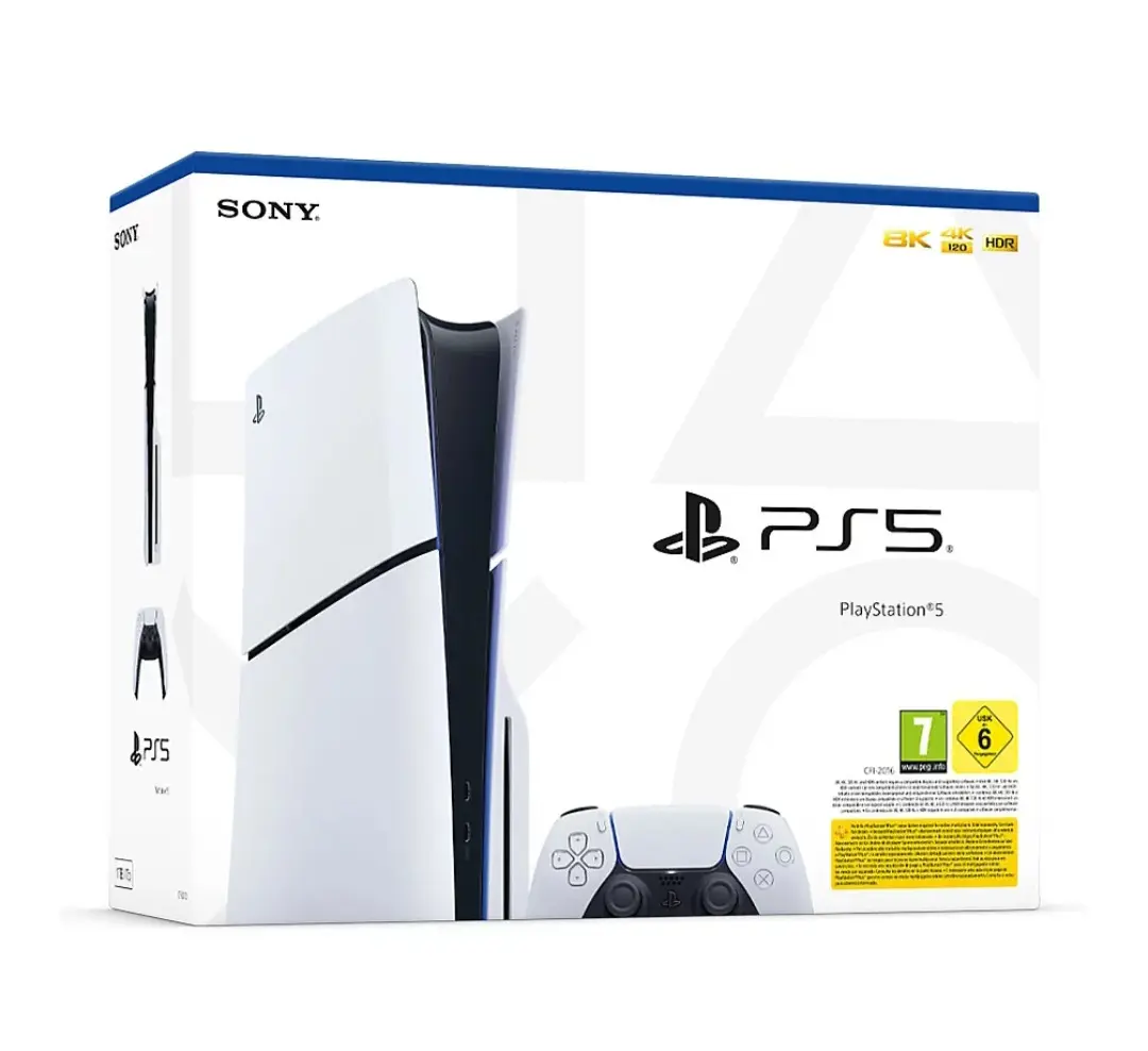 The PlayStation 5 Slim (Disc Edition) for Europe is a compact, sleek version of the standard PS5, featuring a 1TB SSD and a disc drive for physical games and 4K Blu-ray movies. It offers the same powerful performance as the original PS5, including 4K gaming at up to 120fps, ray tracing, and 3D audio. <br />