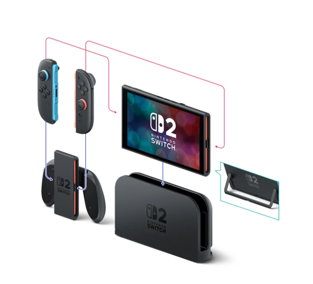 The Nintendo Switch 2 is a hybrid game console, the successor to the Nintendo Switch, released on June 5, 2025. It retains the three play modes (TV, tabletop, and handheld) and detachable Joy-Con controllers of its predecessor, but with significant upgrades. The Switch 2 features a larger, brighter, and more detailed 7.9-inch 1080p LCD screen with HDR and up to 120fps support in handheld and tabletop modes. When docked, it supports 4K resolution on compatible TVs with a 60Hz refresh rate. The console also boasts increased internal storage (256GB), faster data access with microSD Express cards, and improved social features like GameChat. <br />