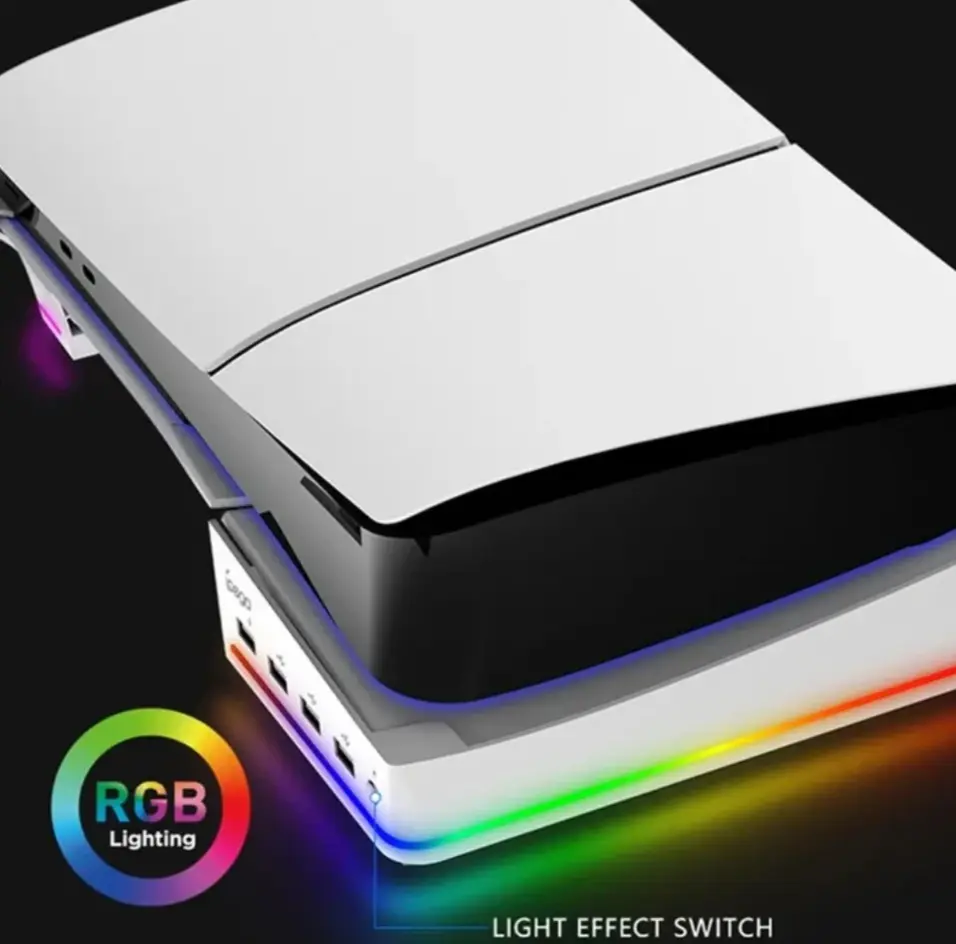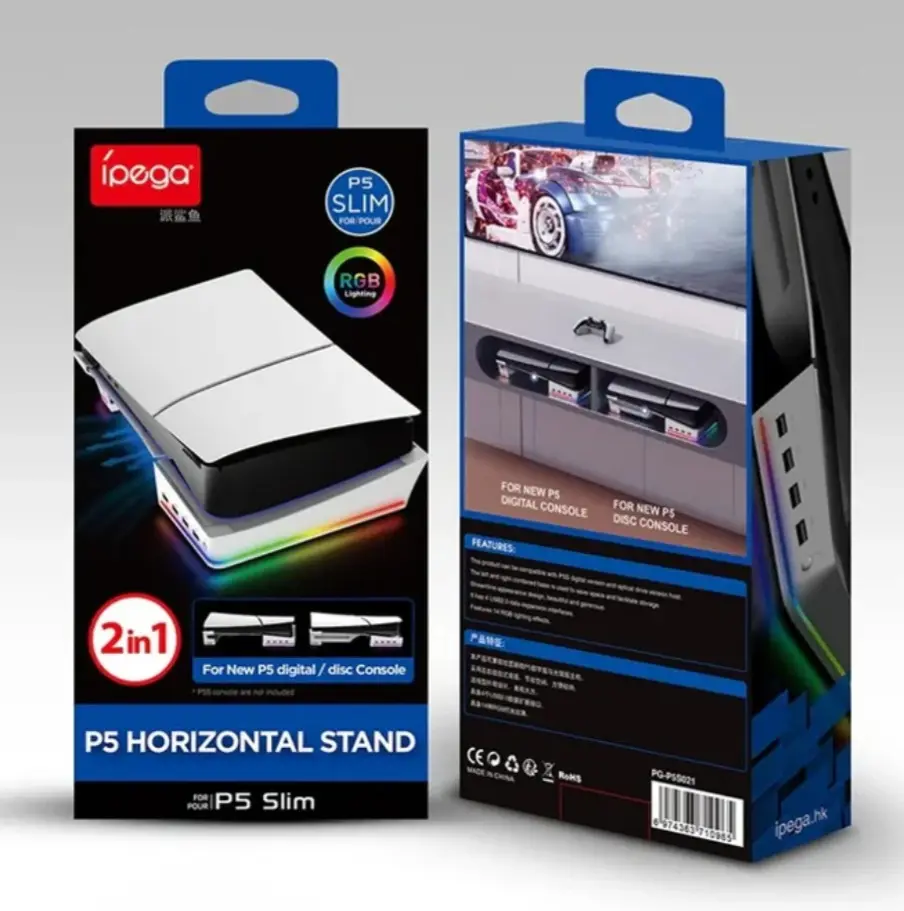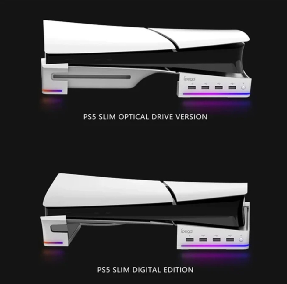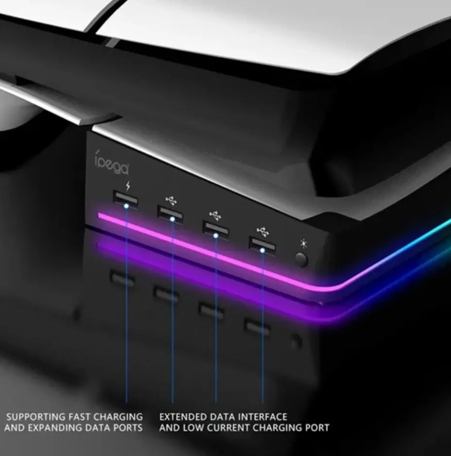 IPEGA PG-P5S021 FOR PS5 SLIM & PS5 PRORGB LIGHT HORIZONTAL STORAGE BASE WITH 4 USB PORTS<br />