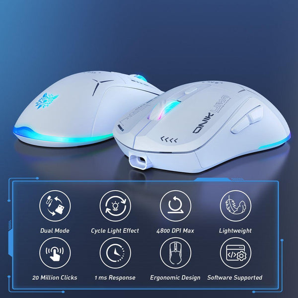 The Onikuma CW917 is a wireless gaming mouse known for its ergonomic design, customizable RGB backlighting, and adjustable DPI settings. It offers both 2.4GHz wireless and wired (Type-C) connectivity, making it versatile for various uses. The mouse features a 400mAh battery, a 250Hz report rate, and a PAW3212DB image sensor. It also has a 3-speed toggle switch and supports resolutions from 800 to 4800 DPI. <br />
