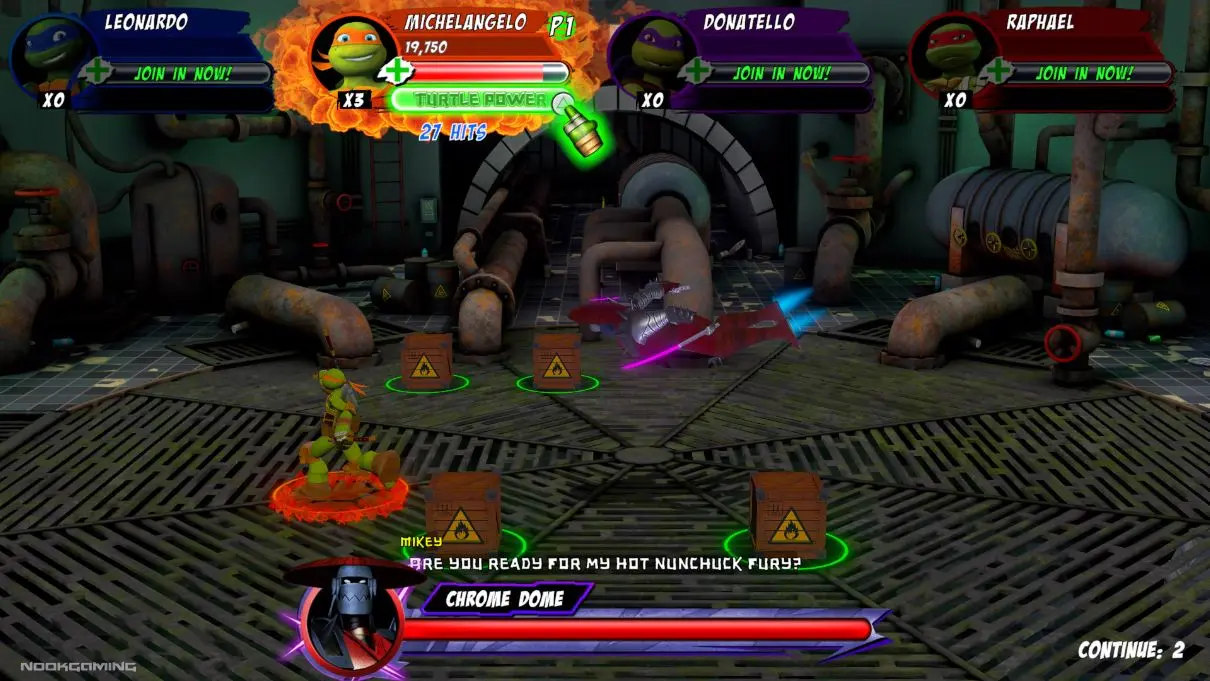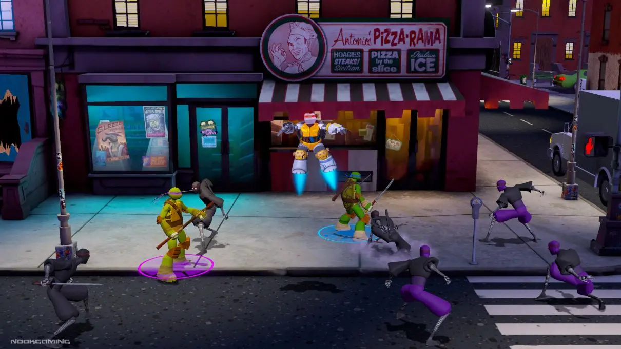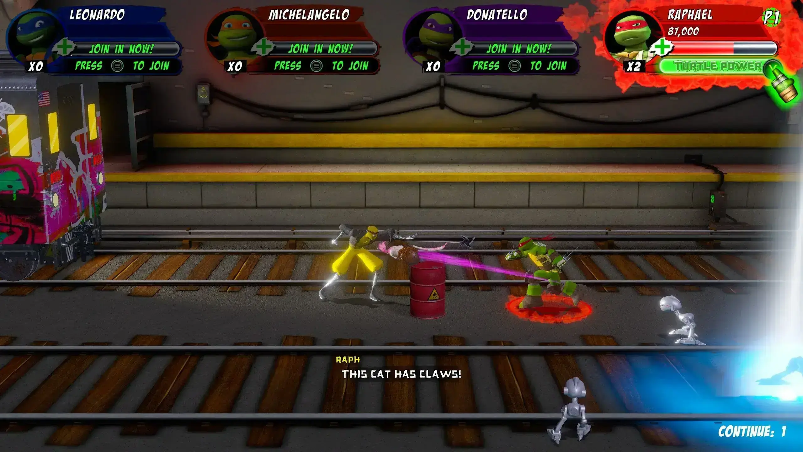 Players traverse levels, fighting hordes of enemies like Foot Clan ninjas, mousers, and robots. <br />