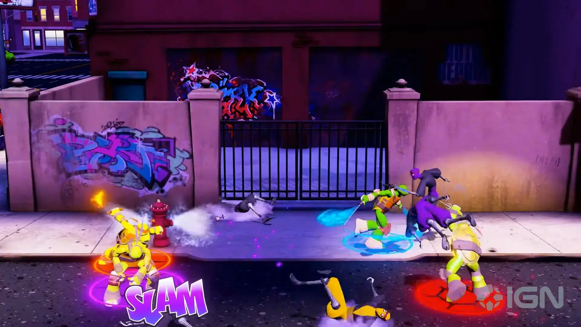 Standard attacks, jump attacks, a special "Turtle Power" attack unique to each Turtle, and the ability to pick up and throw objects are available. <br />