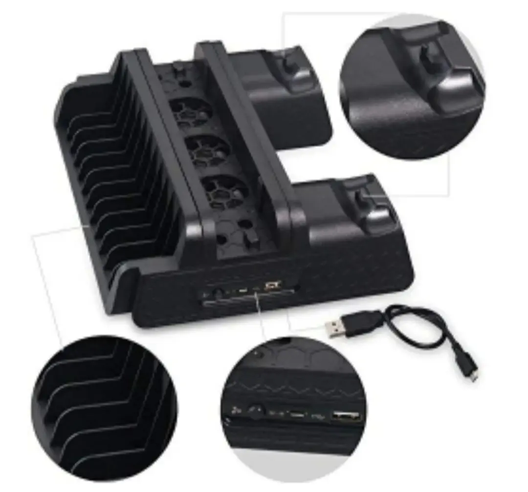 Multi-functional design,work as vertical cooling fan stand as well as dual charging dock station<br />