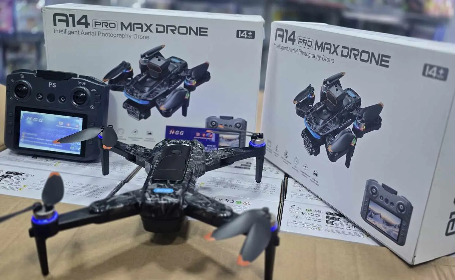 A14 pro max drone insinde box : bag + wings protection + 1 battery <br />