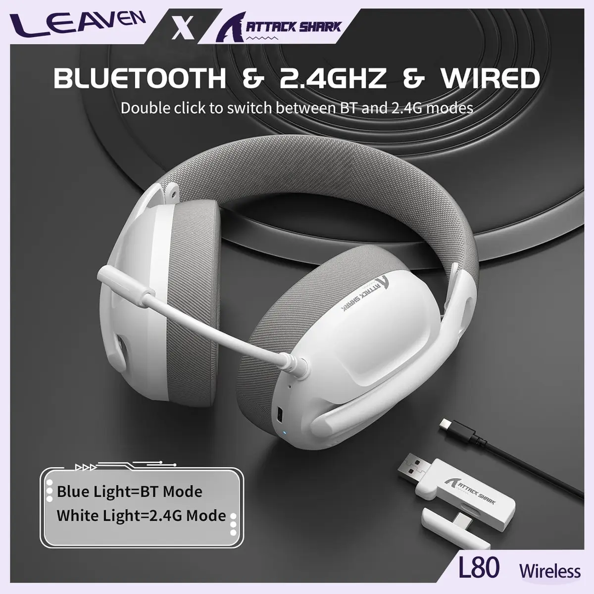 ATTACK SHARK L80 Lightweight Wireless Gaming Headset Over-Ear 180g Pluggable Mic ( Black )