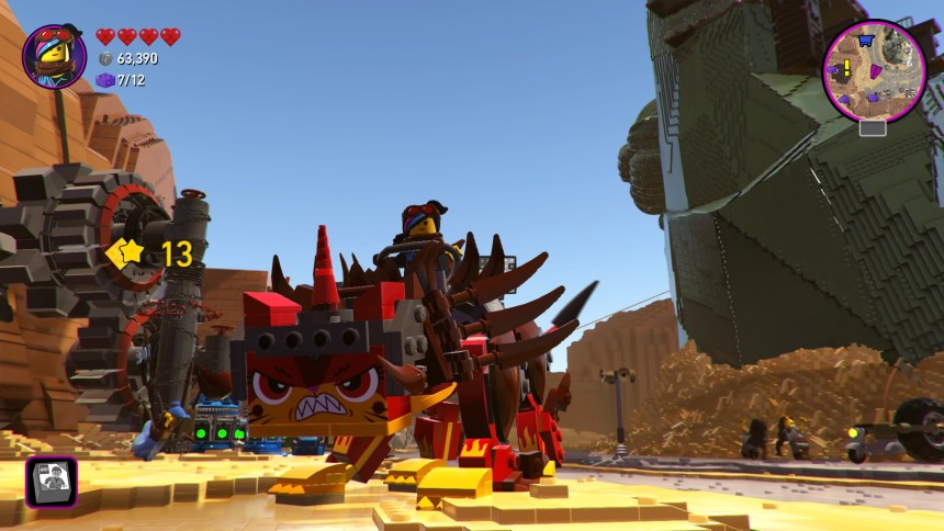 The game features over 100 playable characters from both movies, including Emmet, Lucy, LEGO Batman, and new characters like General Mayhem and Rex Dangervest. <br />