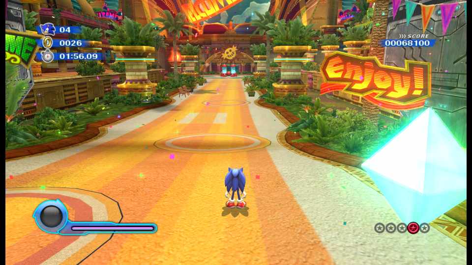 Players control Sonic as he runs, jumps, and boosts through various levels, each with unique environments and obstacles. The Wisps grant Sonic special abilities, such as the Jade Ghost Wisp allowing him to phase through solid objects. <br />